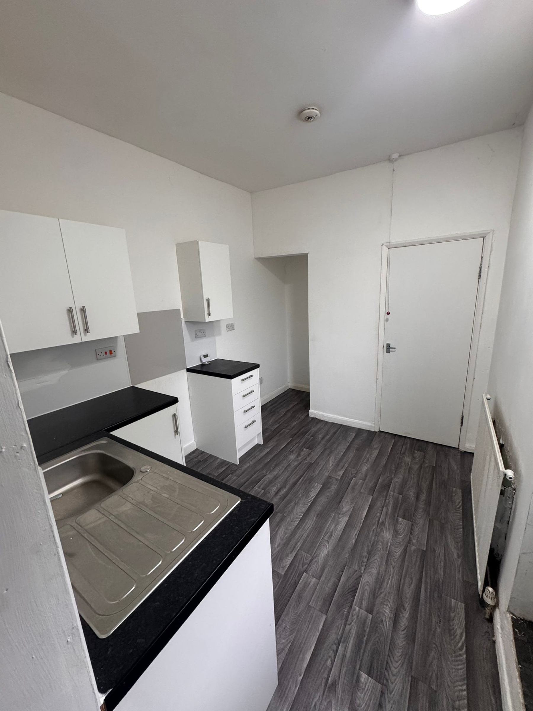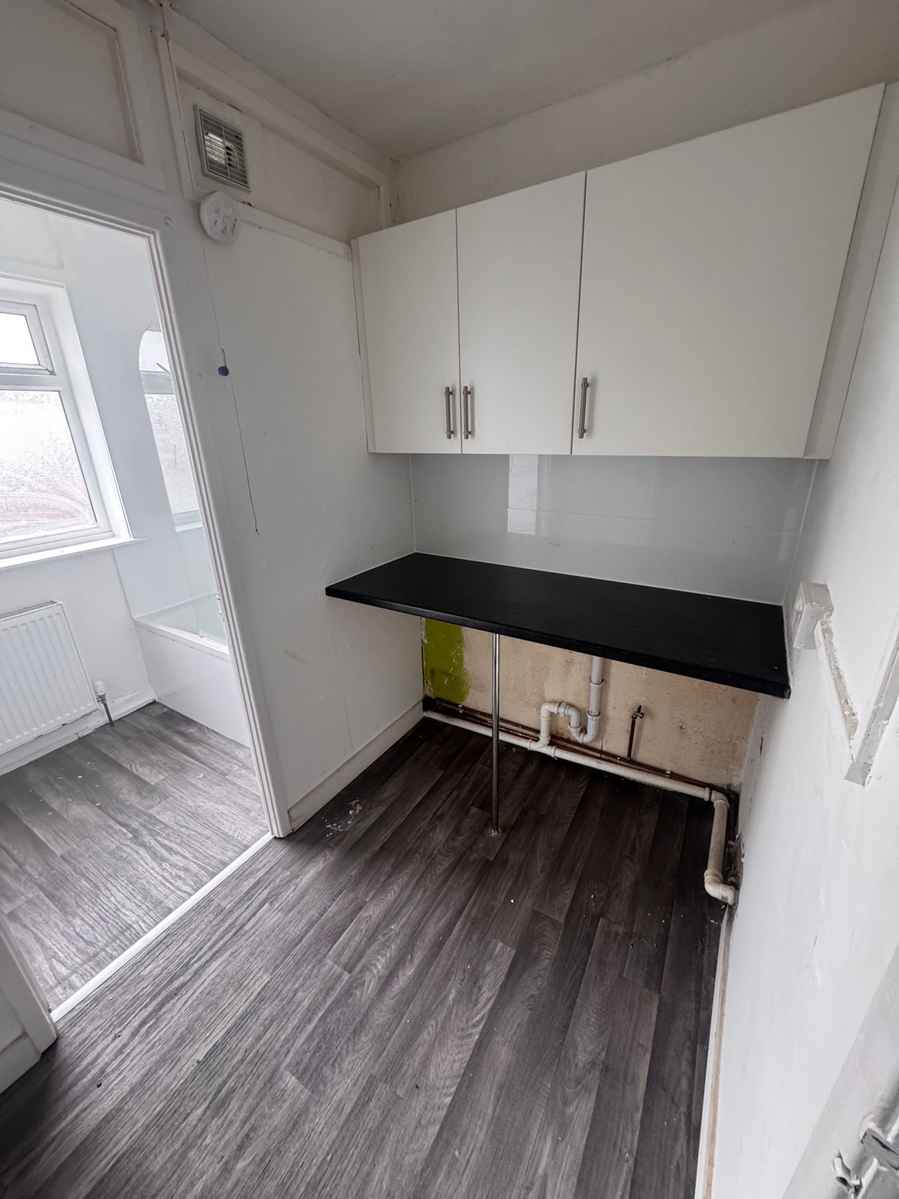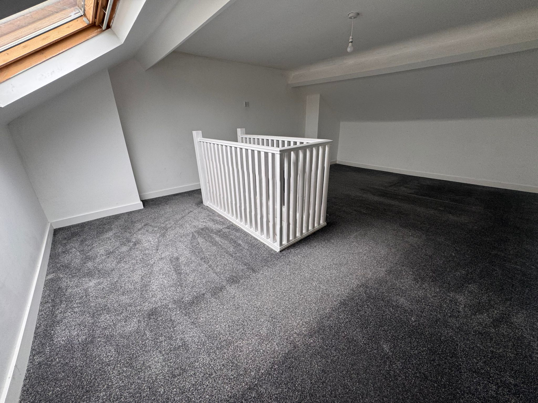 The flat has undergone extensive renovation works throughout and has a new fitted kitchen, new bathroom, fully decorated, and new flooring. To the first floor is fitted kitchen and Utility area. with separate Bathroom. Large living Room , Hallway to the rear with two smaller bedrooms and a staircase leading upto the Good sized double Bedroom with velux window to the front elevation.