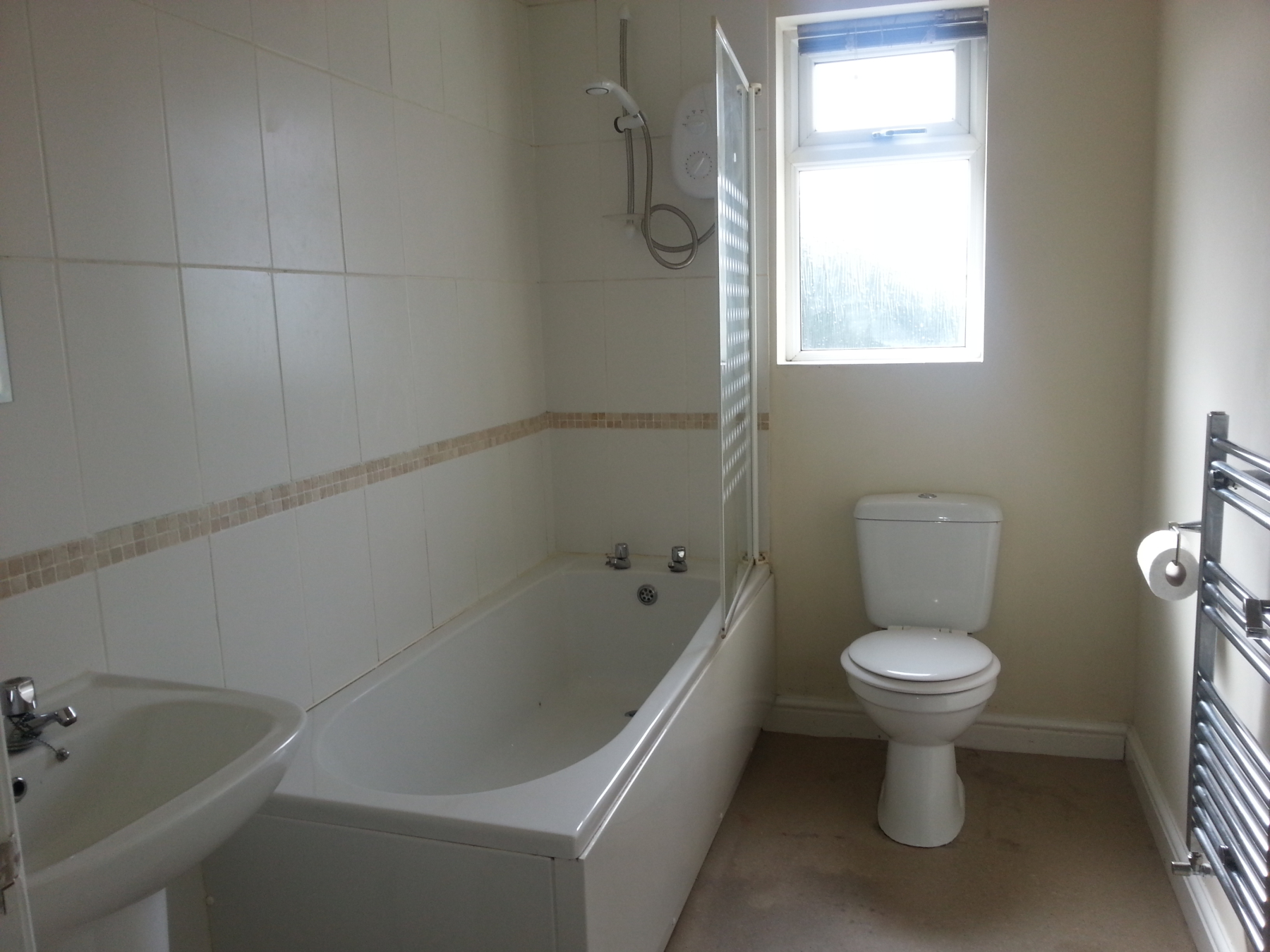 Comprising Double Bedroom, Living Room, Fitted kitchen with hob and oven, Bathroom with white suite with bath and shower over, WC and wash hand basin.
