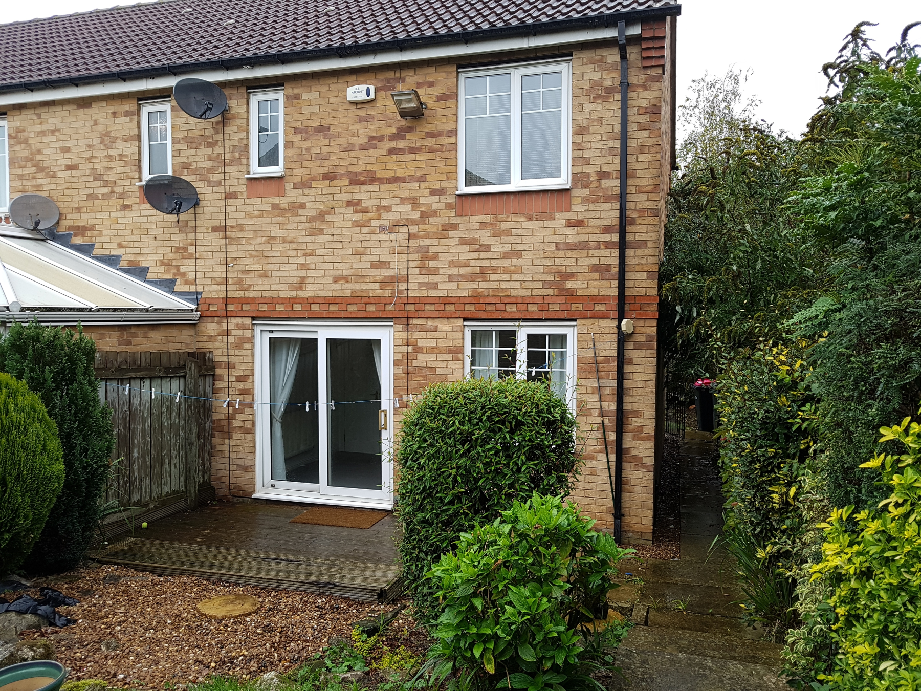 Off road parking to the front of the property with small garden area. path leading to one side through a gate to the enclosed Rear patio and garden, with garden shed for storage.