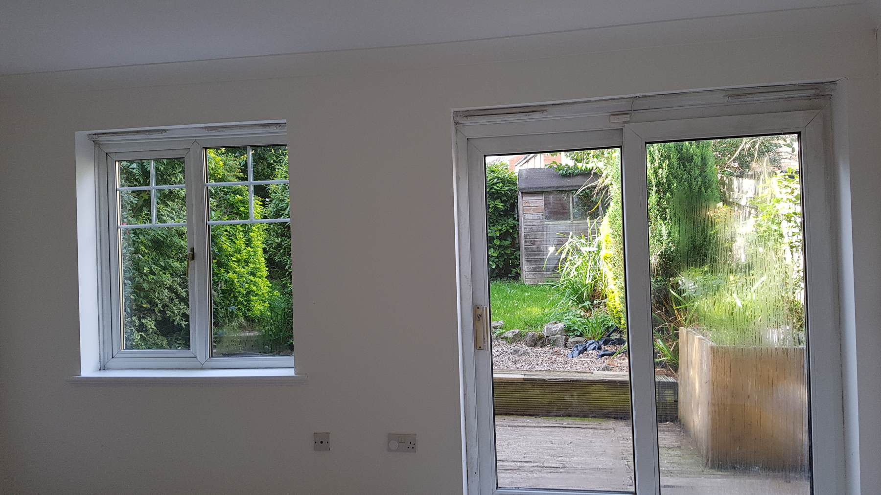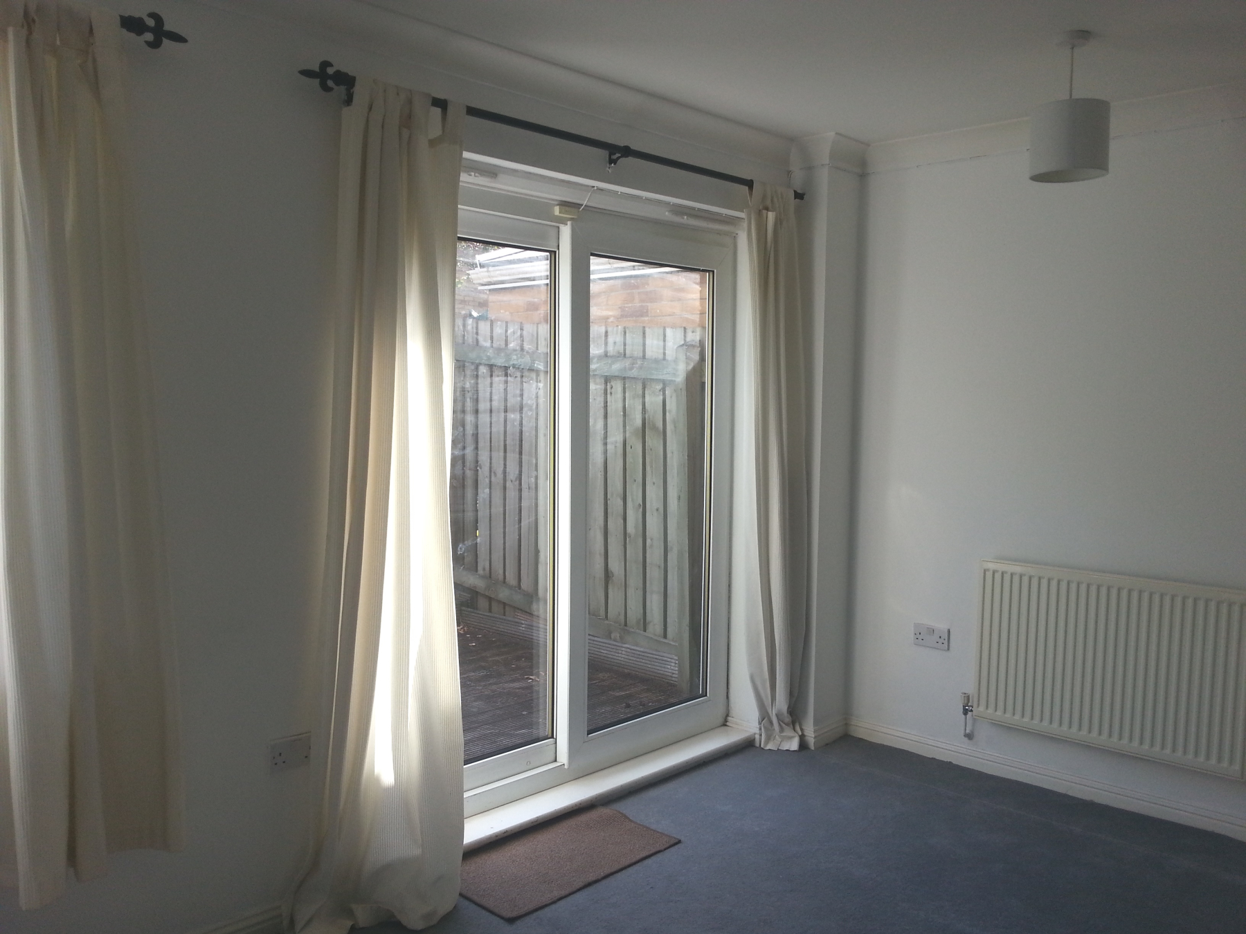 Kitchen with integrated hob, oven and extractor. and leads to Rear Facing good sized Living Room with patio doors to the rear enclosed garden area. Stairs from the hallway lead to the first floor landing, Two Double Bedrooms both having en-suite bathroom or Shower Room.
